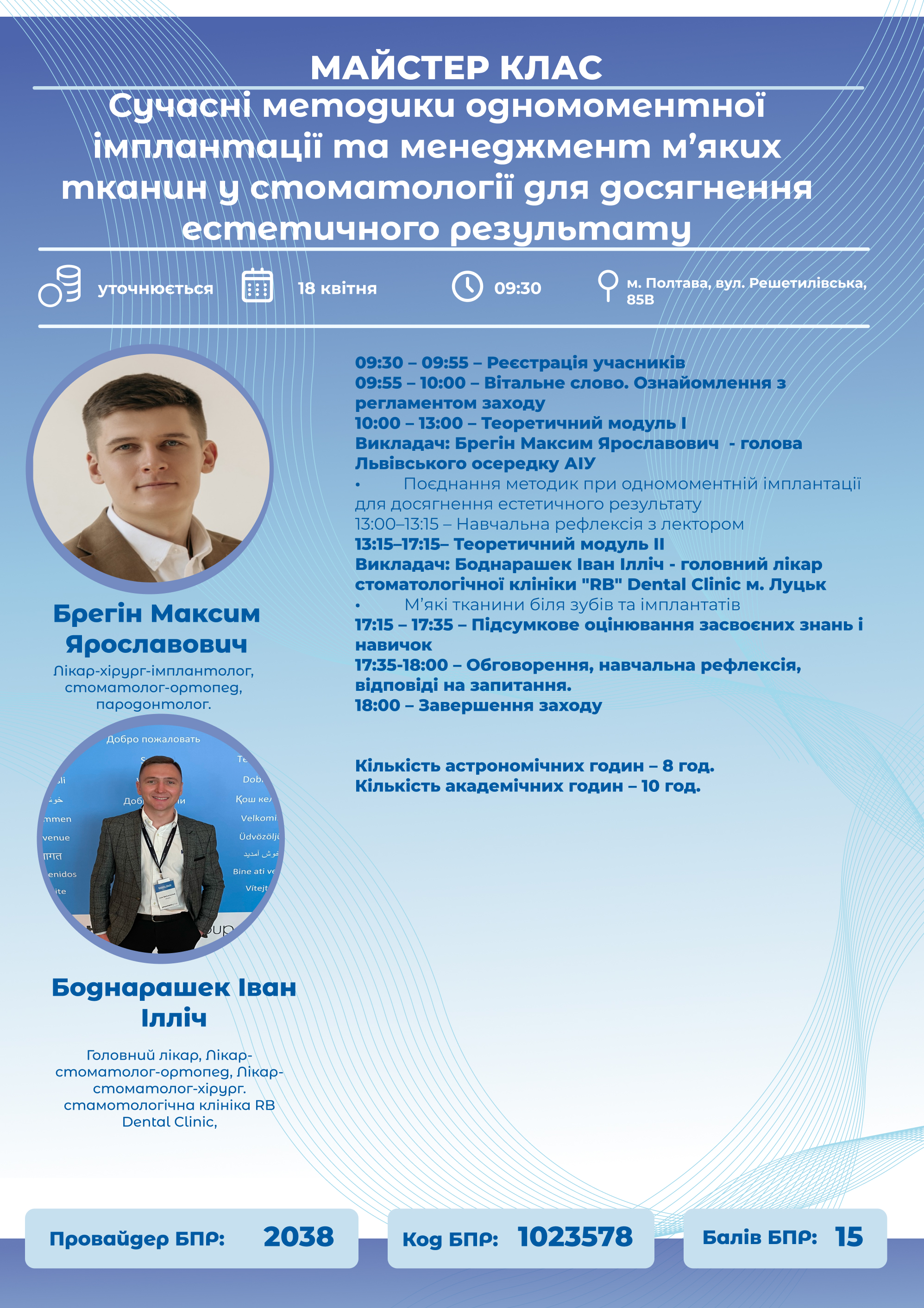Викладач: Боднарашек Іван Ілліч - головний лікар стоматологічної клініки "RB" Dental Clinic м. Луцьк